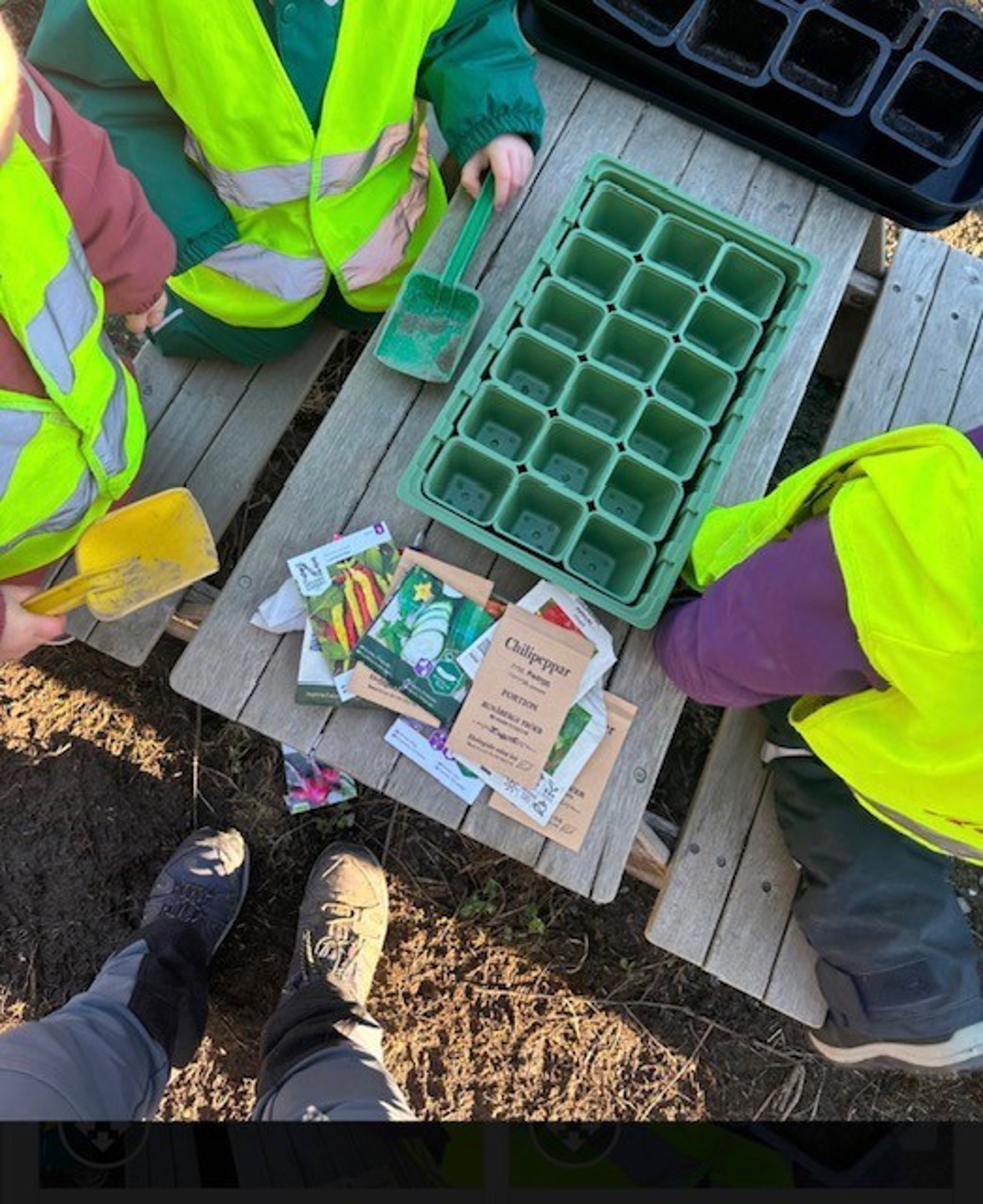 Vi dyrker en del grønnsaker selv og barna er med på prosessen fra forkultivering til å sette alt i drivhuset når groprosessen har kommet godt i gang. Vi har også blåbær, bringebær og tyttebær rett utenfor døra i barnehagen.