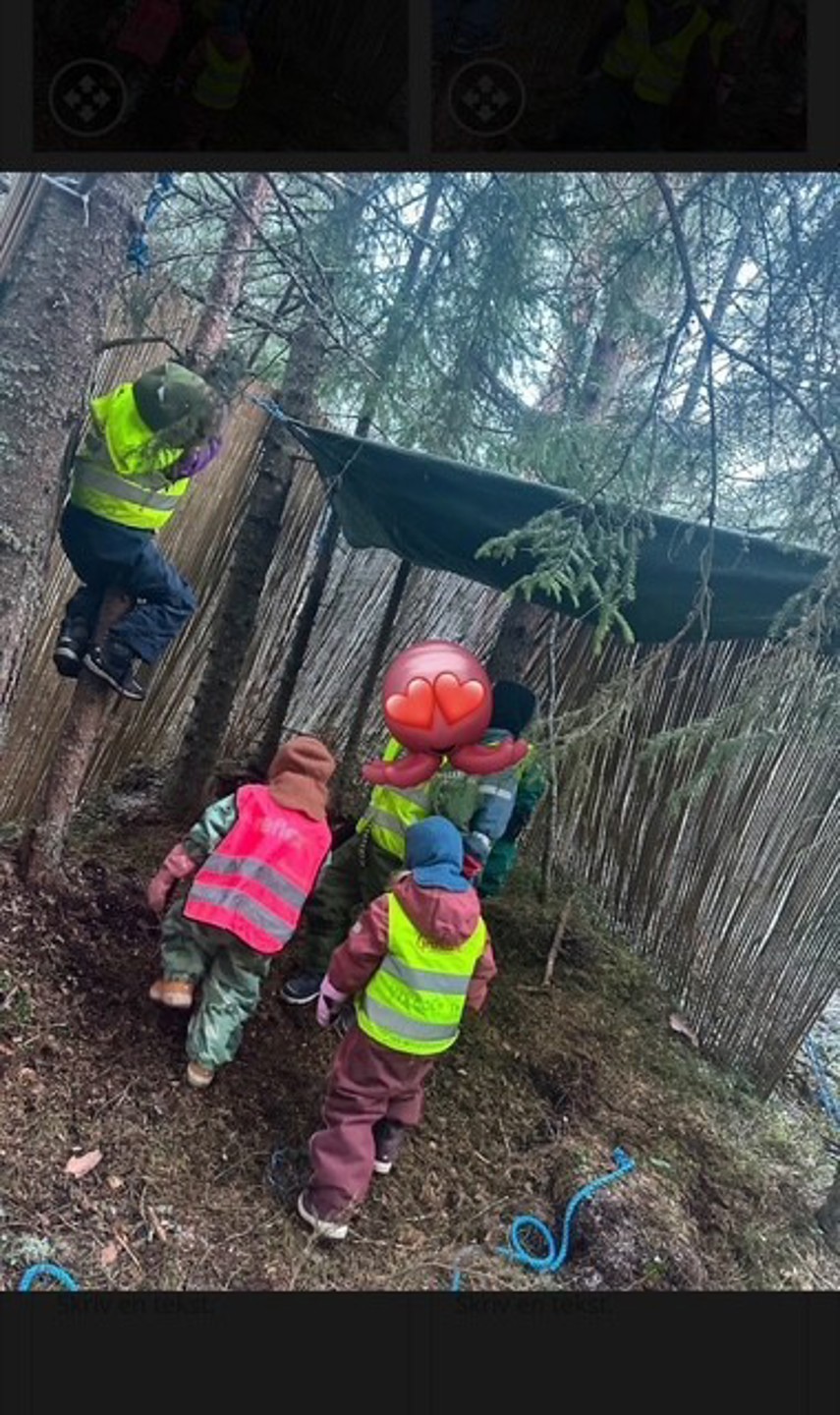 I nærheten av barnehagen har vi bygd vår egen lille lavvo. Her tilbringer vi tid i alle årstider. Barna synes det er spennende og liker nok tanken på at de har vært med på å bygd det selv.